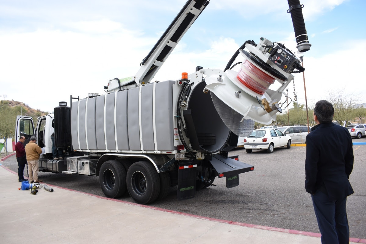 “Les quiero informar que la CEA recibió equipo nuevo para desazolve de tubería de drenaje, que tuvo un costo de casi 14 millones de pesos, el cual se adquirió por indicaciones del gobernador Alfonso Durazo, para atender a todos los municipios, pero sobre todo a los municipios chicos donde la red de tubería está llegando a su vida útil”, precisó.