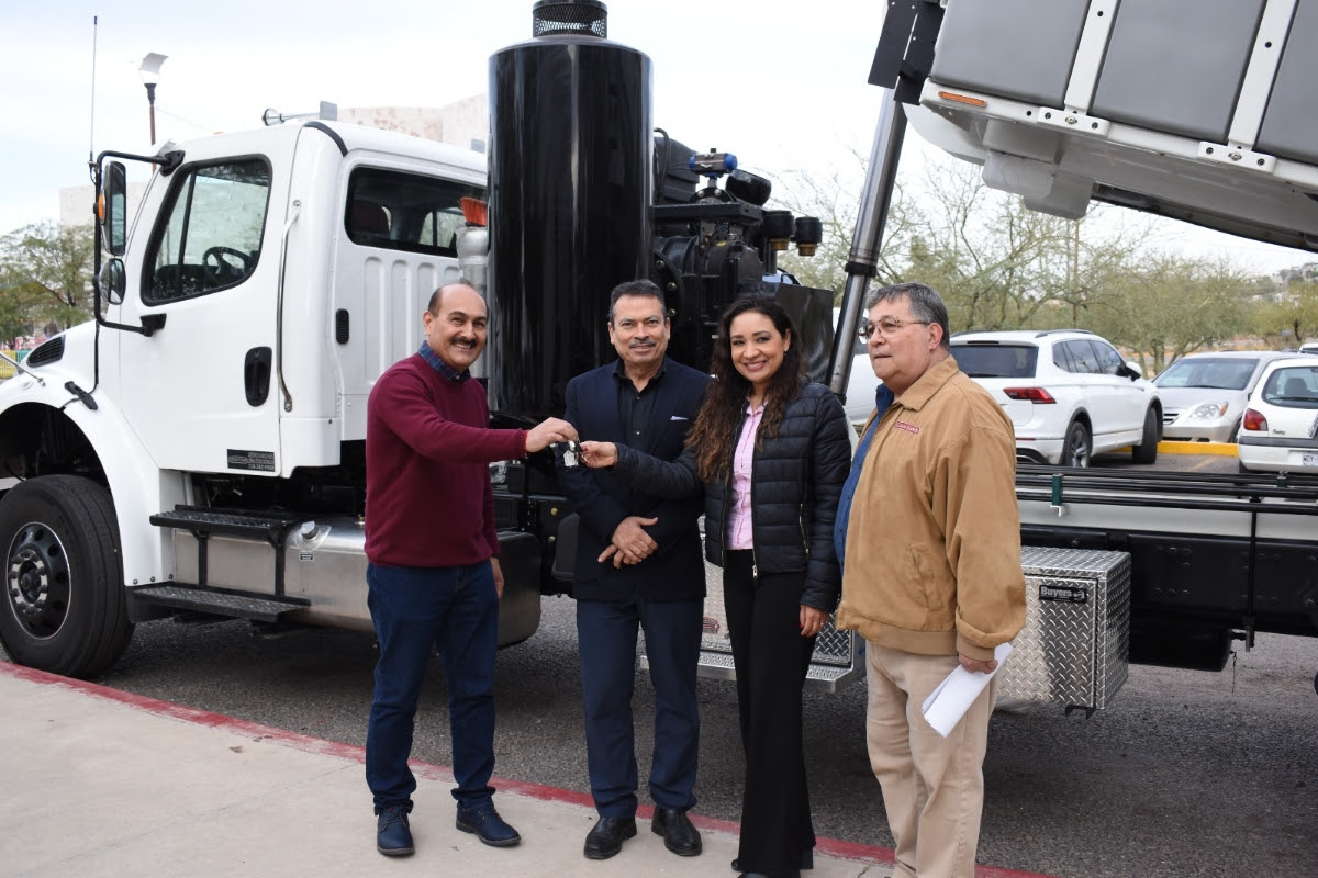 “Y será el primero de otros más que se adquirirán para atender a los municipios del estado, pues este equipo tiene una capacidad de 15 yardas cúbicas, y lo operará la Comisión Estatal del Agua para brindar el servicio a todos los municipios del estado en especial a los más pequeños”, aseveró.