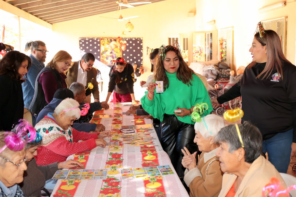 Además, las personas adultas mayores de la Casa Hogar "Madre Amable" en Hermosillo y del Asilo "Cobijo San José" en Guaymas, también tuvieron su festejo navideño organizado por el Voluntariado en donde disfrutaron de juegos, música, quebraron la piñata y además degustaron de aperitivos.