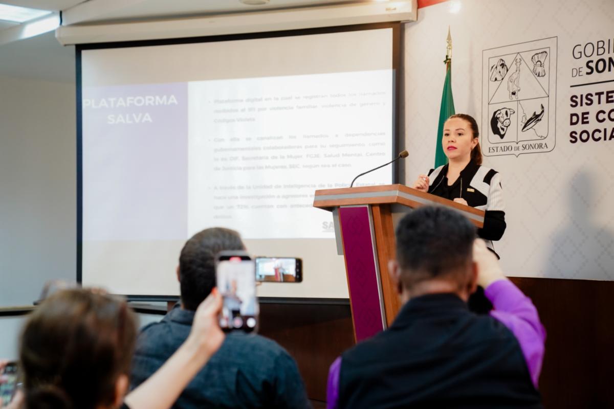 Zulema Boneo Silva, coordinadora estatal del Sistema Salva en rueda de prensa informó que, desde la Secretaría de Seguridad Pública (SSP) en colaboración con instituciones gubernamentales y sociedad civil, se trabaja en la protección de las mujeres.