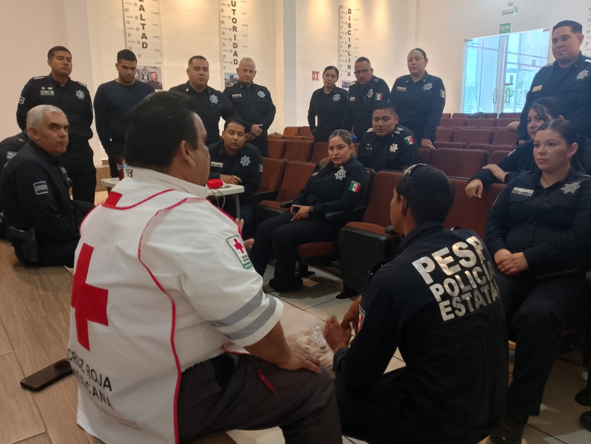 Personal de la Policía Estatal de Seguridad Pública (PESP) que cuenta con conocimientos como paramédicos, participan en el entrenamiento con personal especializado de Cruz Roja y Centro Regulador de Urgencias Médicas (CRUM).