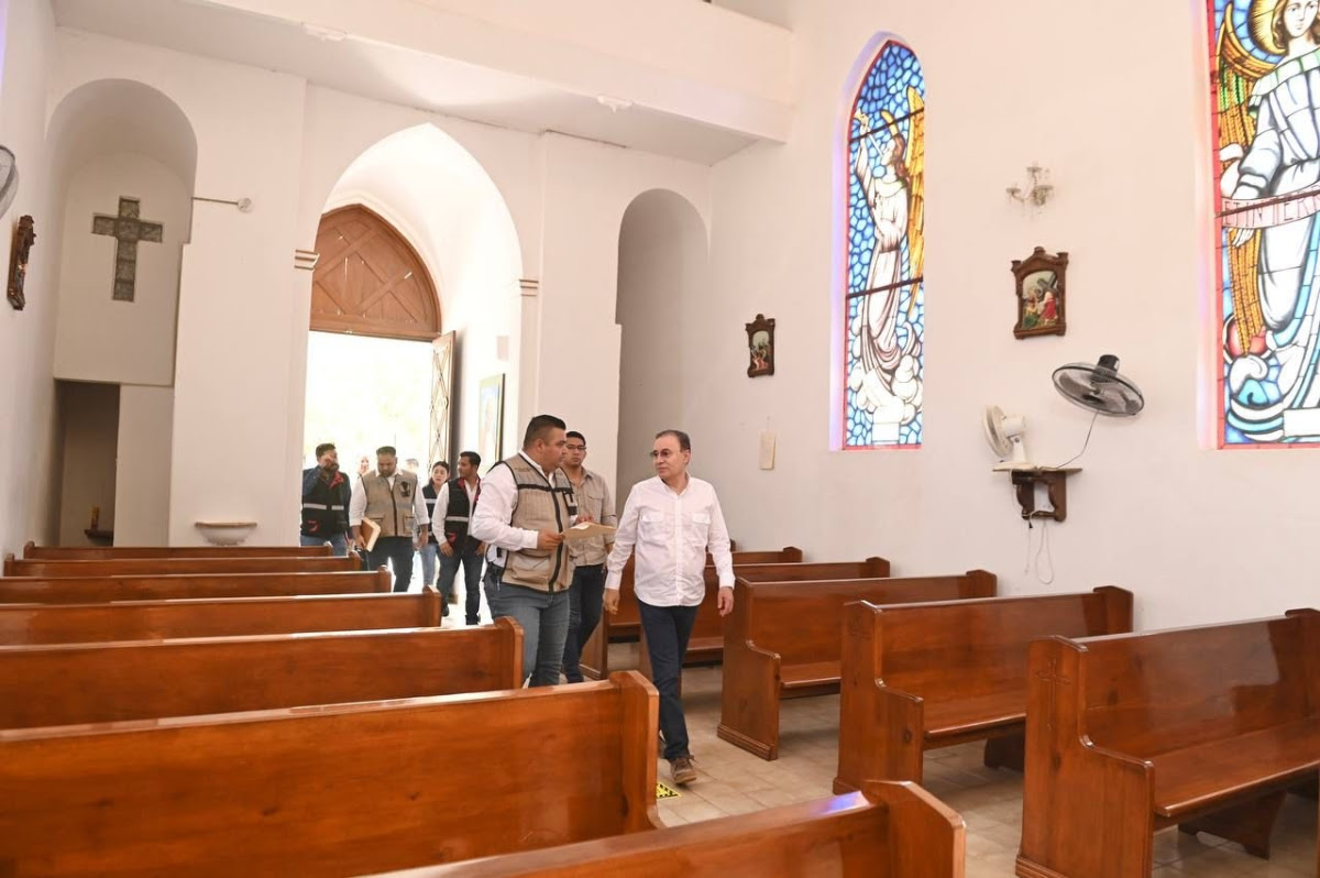 Como parte de su gira de trabajo, el gobernador Durazo Montaño realizó un recorrido de supervisión en el templo de San Miguel Arcángel, donde atestiguó las acciones de mejora de fachada y pintura interior, con lo que se atiende la infraestructura emblemática del municipio.