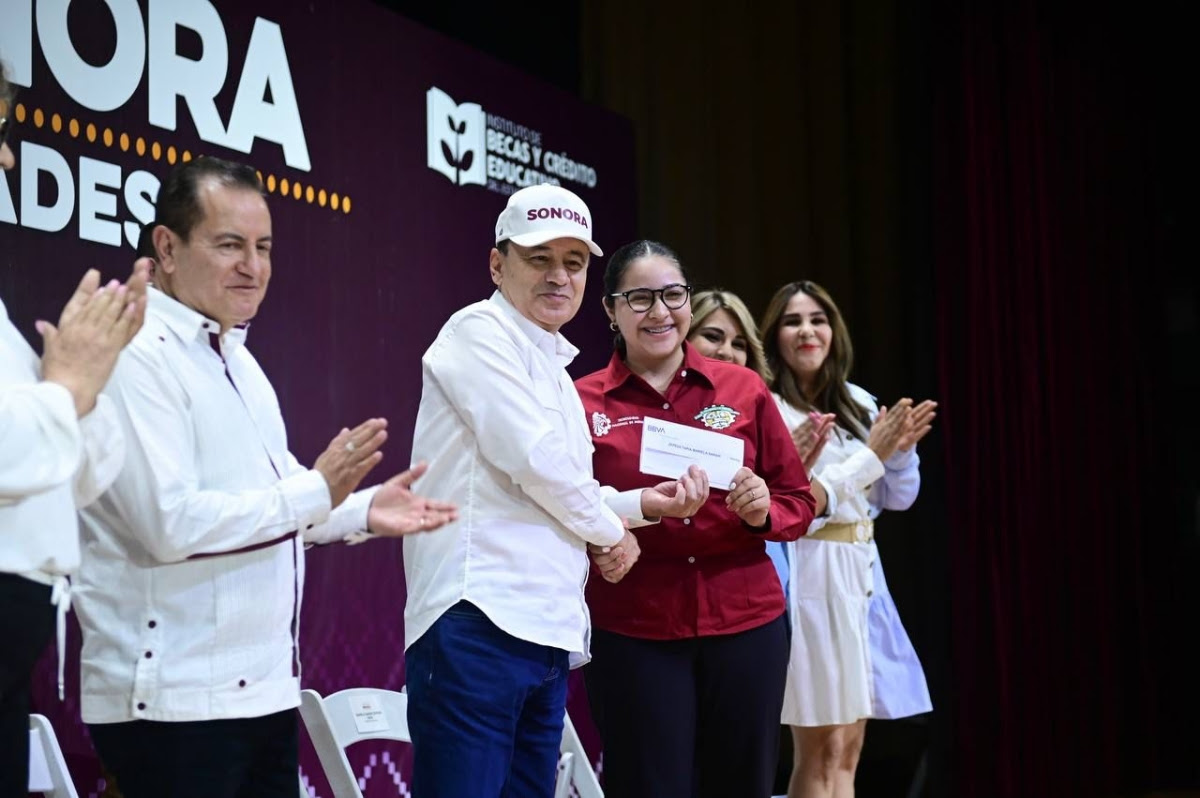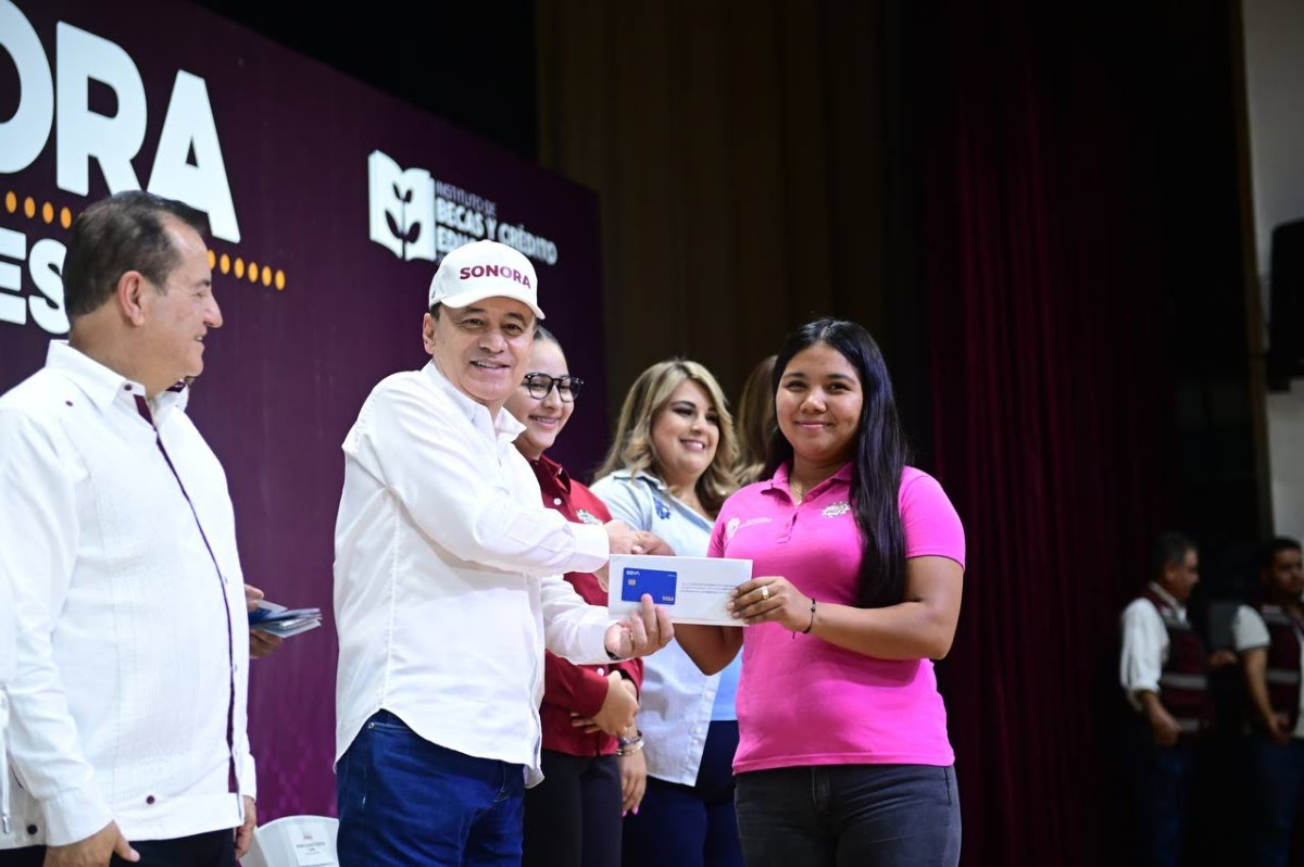 Como parte de su gira de trabajo por Agua Prieta, el gobernador Durazo Montaño entregó 949 becas para estudiantes de primaria, secundaria y universidad, con un monto de dos millones 150 mil pesos, con lo cual, dijo, las y los jóvenes sonorenses podrán seguir con sus estudios sin que la economía sea una limitante.