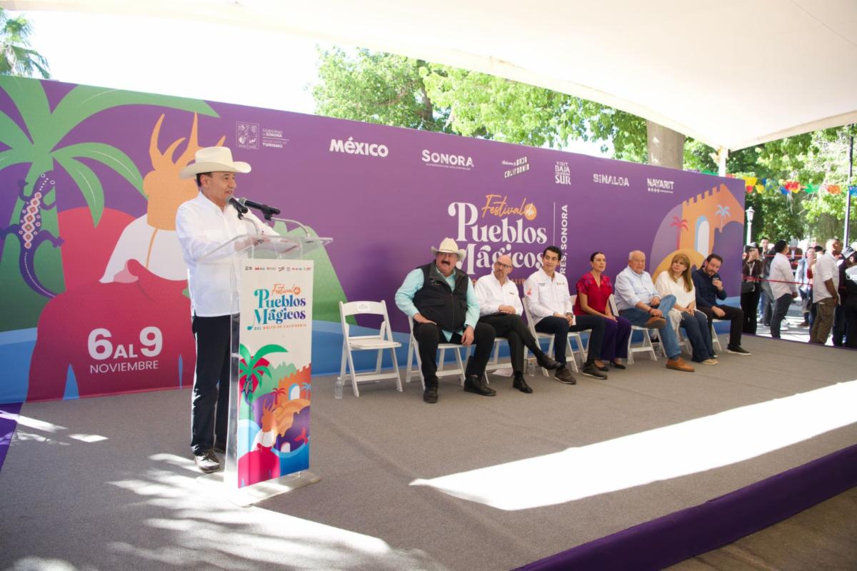 El mandatario estatal, junto a la secretaria de Turismo Federal, Josefina Rodríguez Zamora, y Víctor Manuel Castro Cosío, gobernador de Baja California Sur, inauguró el Festival destacando la oportunidad que representa para promover la cultura, el turismo y la economía regional; evento impulsado por la Alianza del Mar de Cortés que reúne a 22 pueblos mágicos de los estados de Sonora, Baja California, Baja California Sur, Sinaloa y Nayarit.