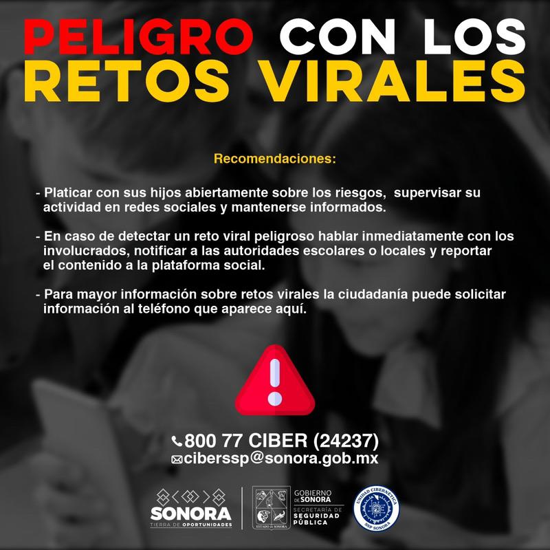 Los retos virales pueden parecer divertidos, pero conllevan riesgos graves para la salud física y mental, incluso llegando a ser mortales, advirtió la Unidad Cibernética de la Secretaría de Seguridad Pública en Sonora.